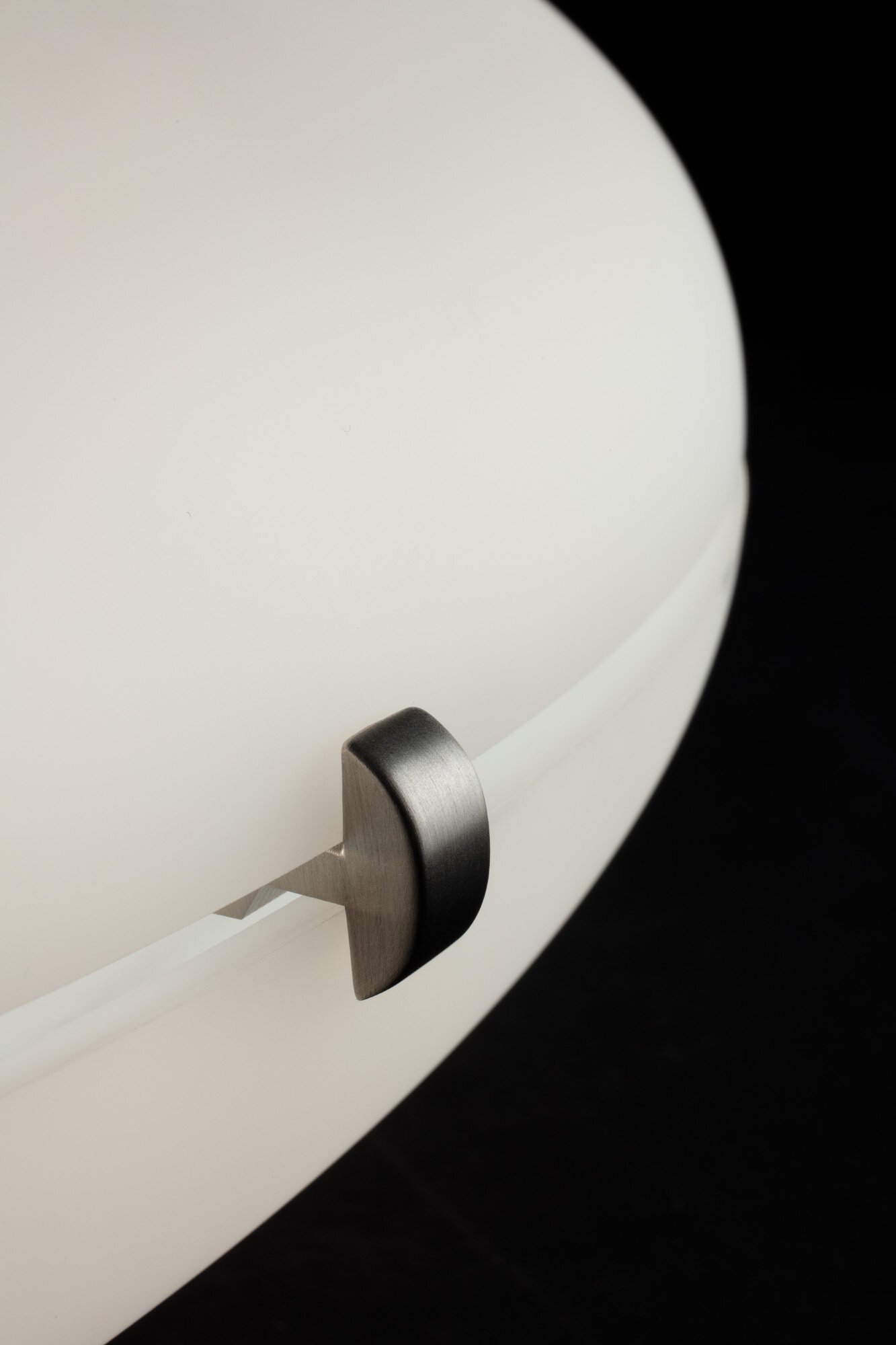Here he encouraged and promoted different experiences and built a network of international relations, transforming his design and publishing endeavours – in addition to “Domus”, “Stile” and the extraordinary monographic pamphlet “Aria d’Italia”, Espressione di Gio Ponti, designed with Daria Guarnati – into both physical and figurative incubators where ideas could be exchanged in order to define a new vision of architecture and high-quality products. These places and their rituals, the flow and overlap of different practices, and the invention of a new kind of writing which could describe what was happening, almost like a diary, were the increasingly confident assertion of the top levels being expressed by the Italian arts. Like the Triennale expositions, which Ponti not only organized but also used to boost the presence of architecture and design in the cultural climate of the time. At the 11th Triennale in 1957, in the pavilion for new ideas in building situated in Parco Sempione, Ponti presented two lamps which he had designed in a range of variations. In a preparatory study, some hands are about to grasp a sphere as full as the moon. The word “moon” appears right alongside. And then the sphere is flattened at the ends, along the vertical and horizontal axis, and then half of it is coloured, and then it is slanted. In an endless game of materializing possibilities.